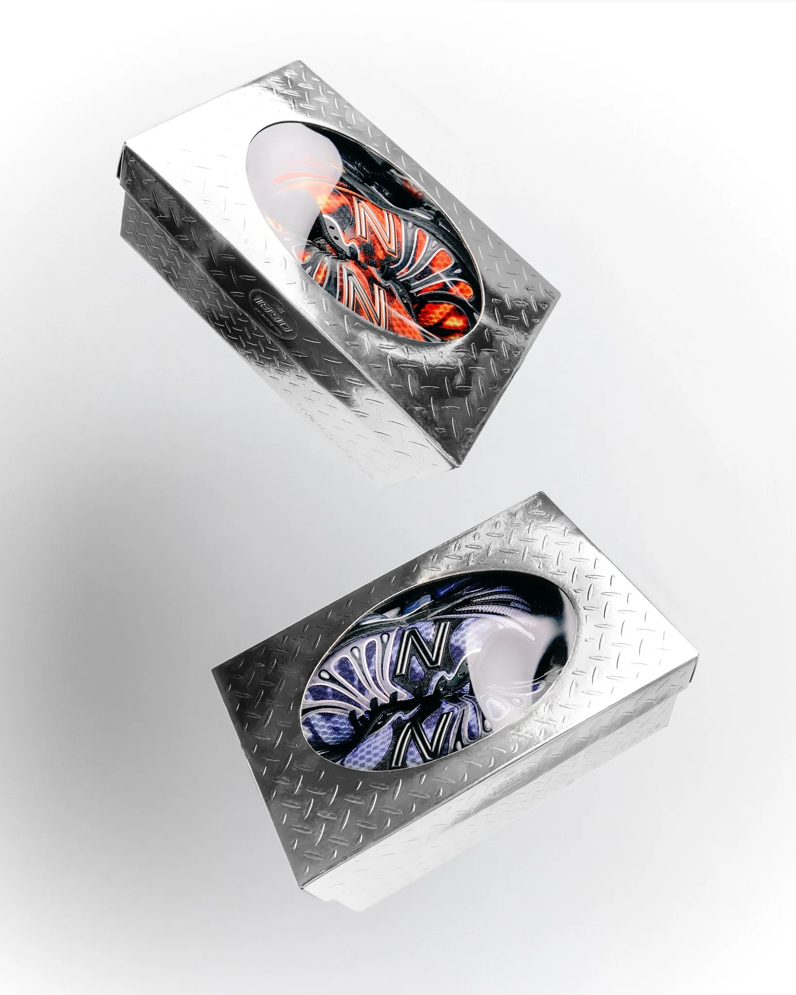 The drop arrives as a two-pack. Leaning into the “90” in the silhouette’s name, Robinson pulls from childhood memories of rushing home to catch music videos on MTV — a visual world defined by Hype Williams’ bold color palettes, fish-eye lenses, and futuristic CGI.