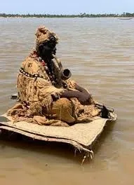 Photo of a Sarkin Ruwa sitting on a raft