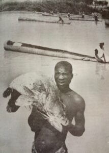 Men in canoes drum loudly while others shake large gourds filled with seeds to push fish toward the competitors. The contest typically lasts around an hour, after which the fish are weighed, and the largest earns the top prize.