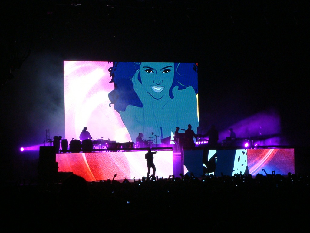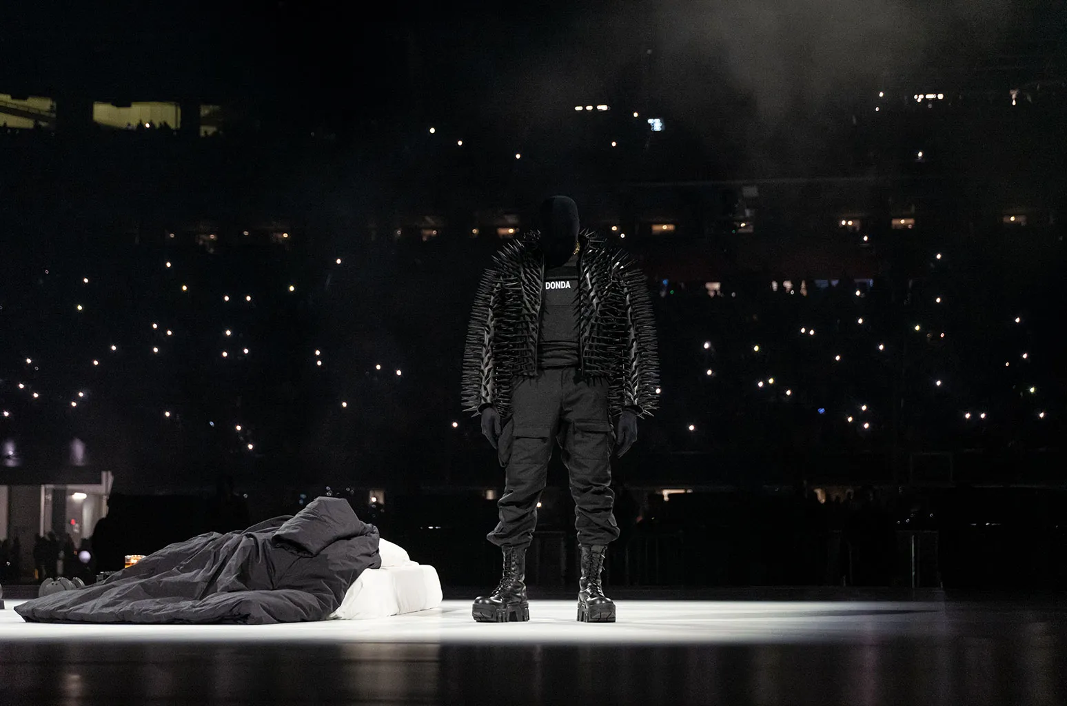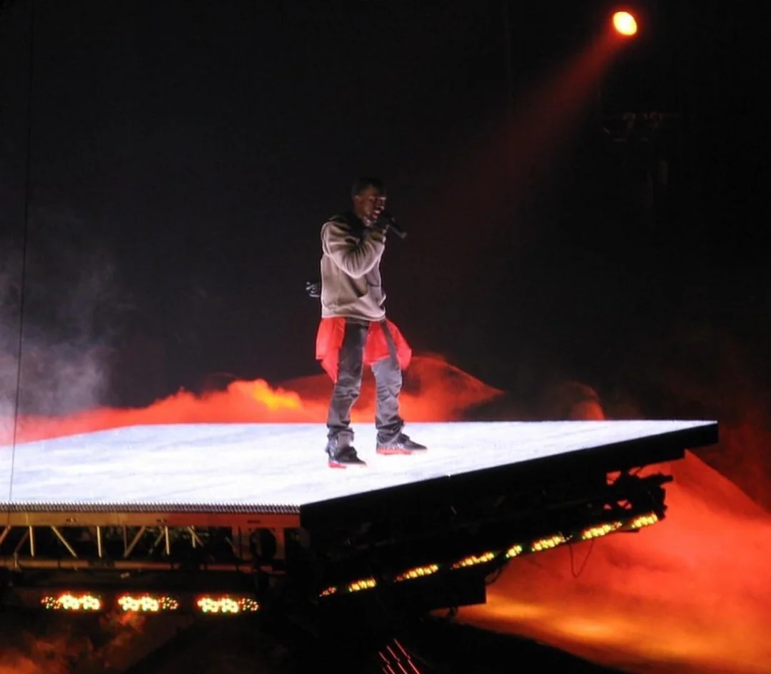 With support acts from Rihanna, N.E.R.D., and Lupe Fiasco, Kanye worked closely with Es Devlin to create a sci-fi spectacle — glowing LED landscapes, massive screens, haze, and space-themed elements that positioned Ye as a lone traveler in a cosmic world.