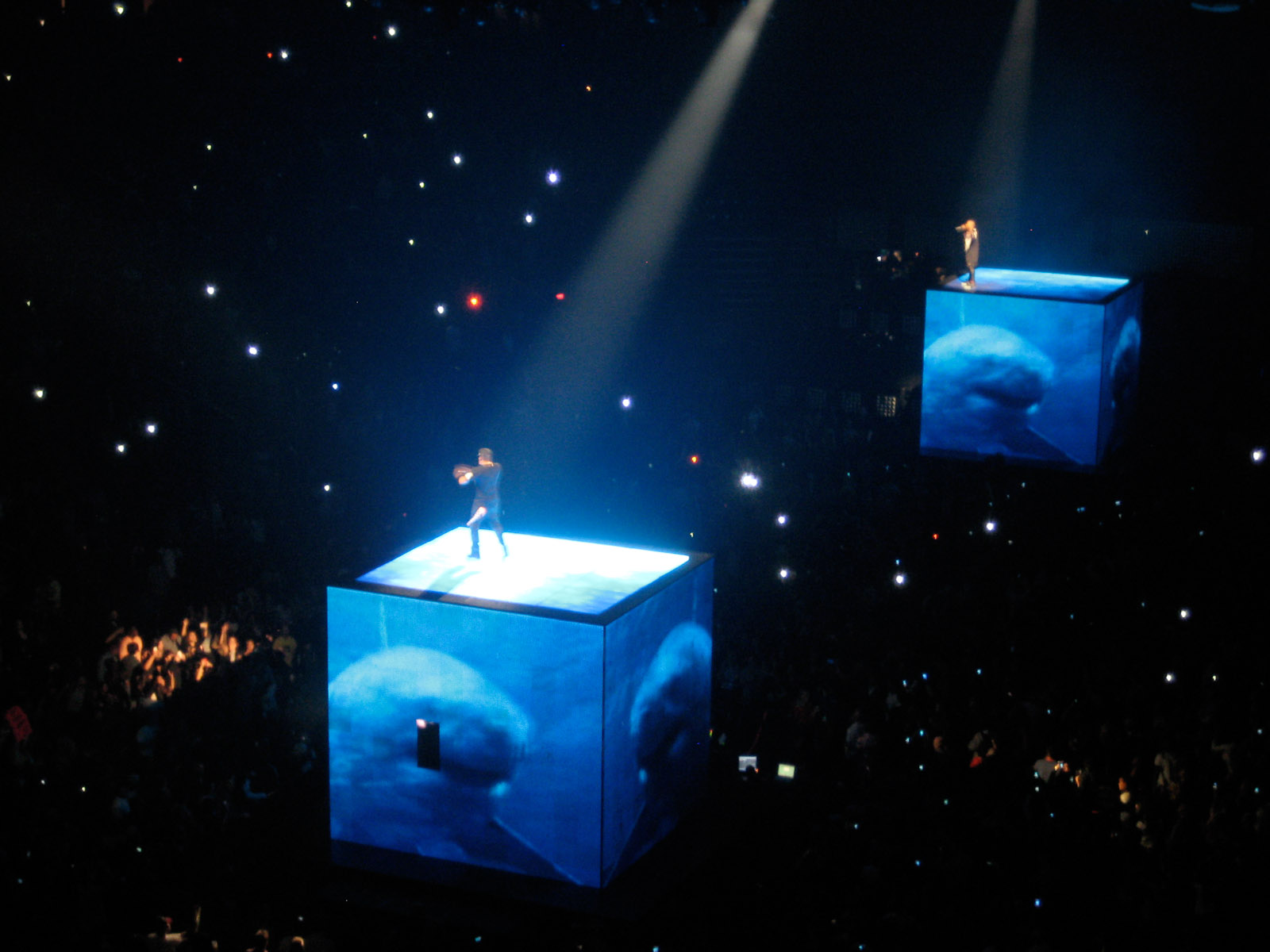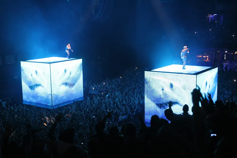 Grand, architectural stages with pyramids, luxury aesthetics, and high-drama lighting defined this one. The tour inspired Kanye West to launch his own design company, DONDA — focused on production and named after his late mother. The tour grossed a total of $95 million, making it the highest-grossing hip-hop tour at the time.